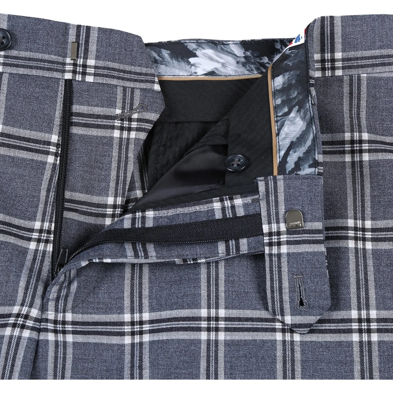 This suit has a 7" drop. Subtract 7 from your jacket size to determine pant size. For example, a size 38R jacket will come with size 31 pants